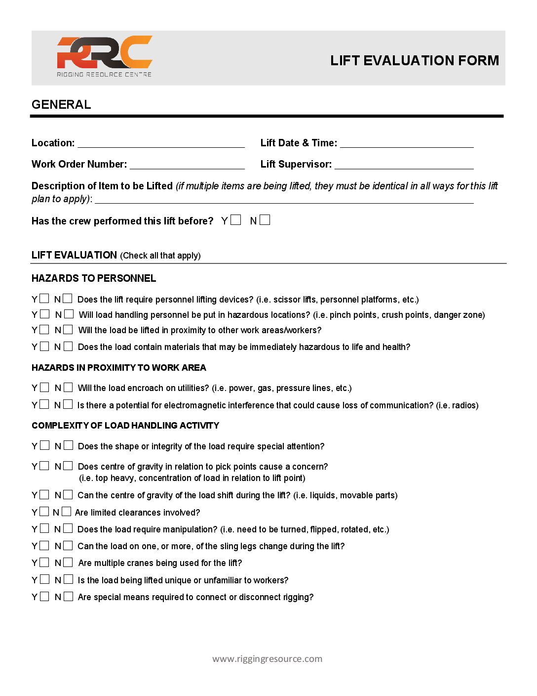The crane operator or lift director can use this sample form to assess and plan a lift prior to moving a load. Click the icon below to download the form.